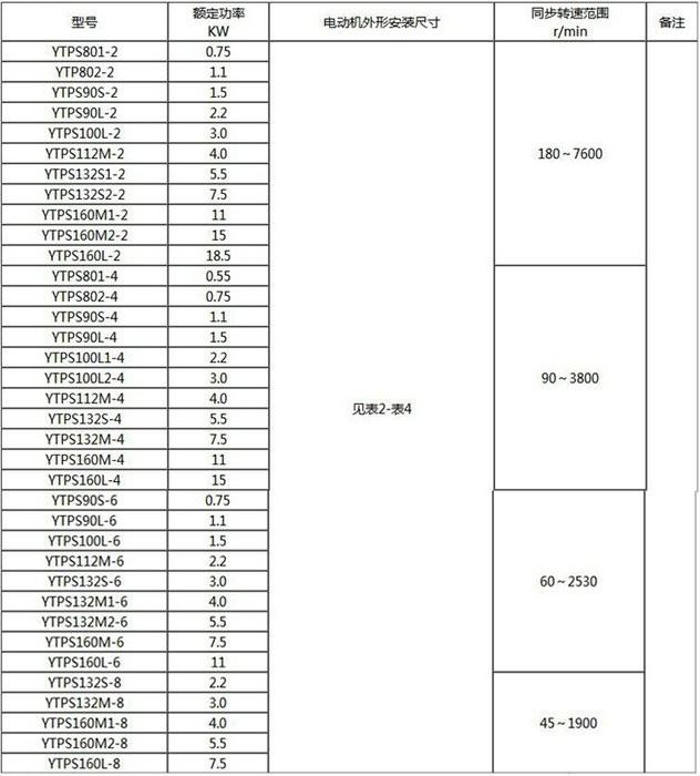 YTPS系列變頻調速三相異步電動機與變頻器組成的通用型無級調速系統,與其它無級調速方法相比,具有調速范圍廣、運行可靠、維修費低、體積小、效率高、節電效果好、速度調節精度高等特點,并可實現速度和轉矩的閉環控制,是紡織、化工、冶金、煤炭、輕工、機械制造等行業的無級調速設備的理想動力源。