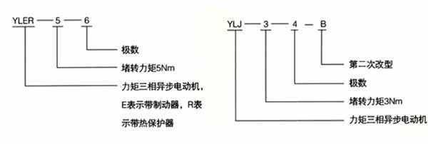YLJ、YLER系列力矩三相異步電動機同、具有起動轉矩大,堵轉電流小,機械特性較軟,或帶有制動器和溫度保護,結構緊湊,體積小等特點。該系列電動機工作制為斷續周期工作制(S5)。